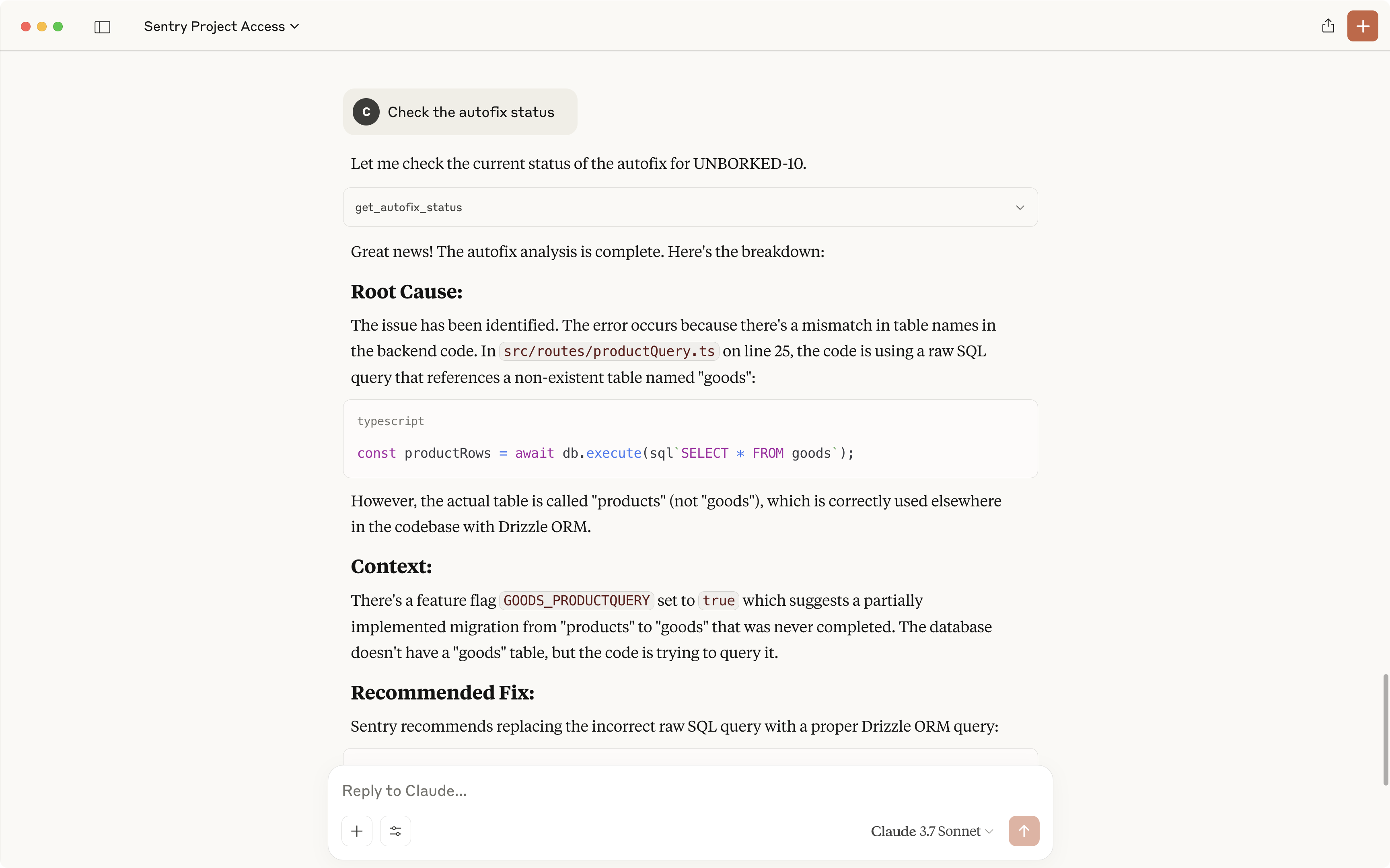 - Seer Integration: Invoke Sentry's AI agent for root cause analysis and automated fixes